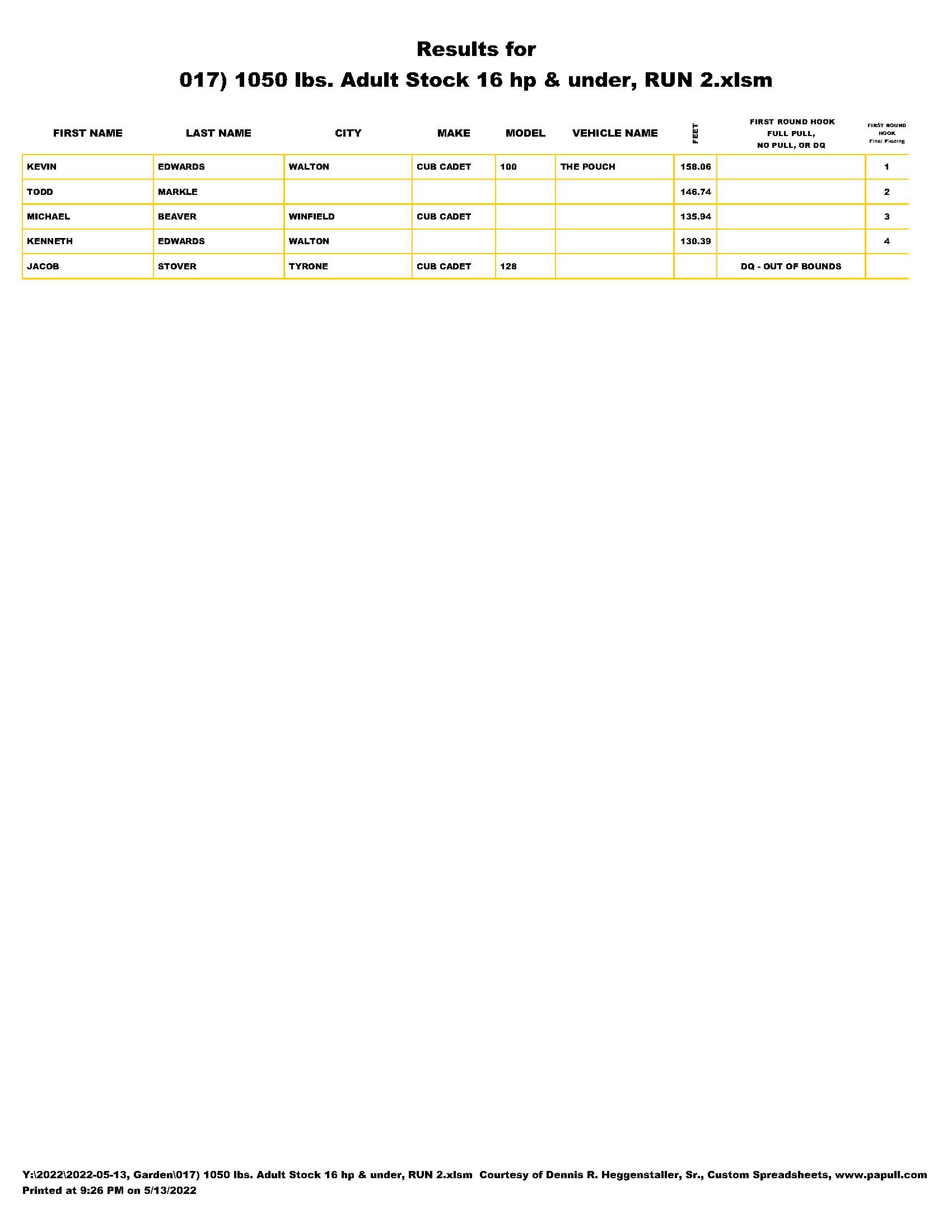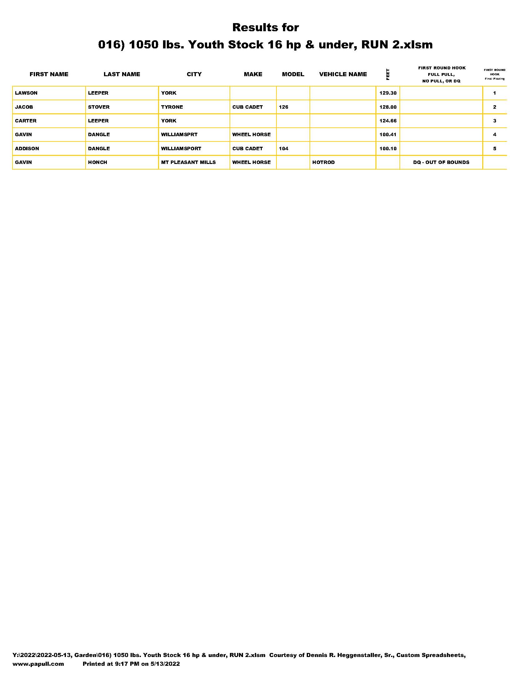 | 005) 1050 lbs. Youth Stock 16 hp & under, RUN 1.pdf |