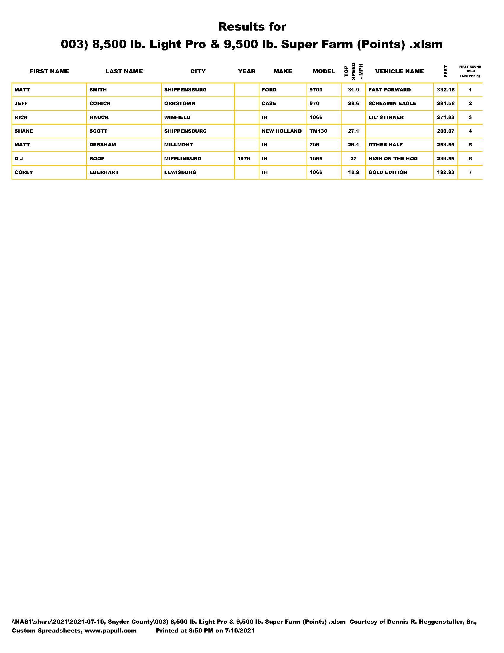 Snyder County Tractor Pullers 2021