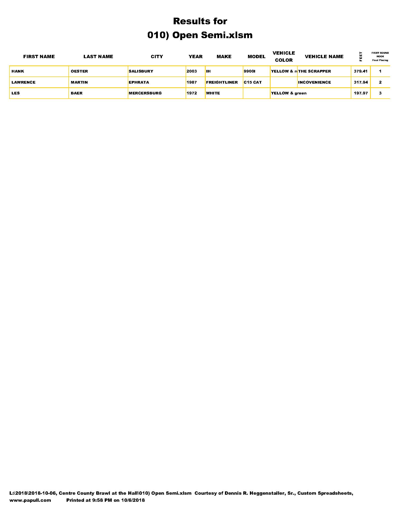 TRUCK, TRACTOR & SEMI PULL