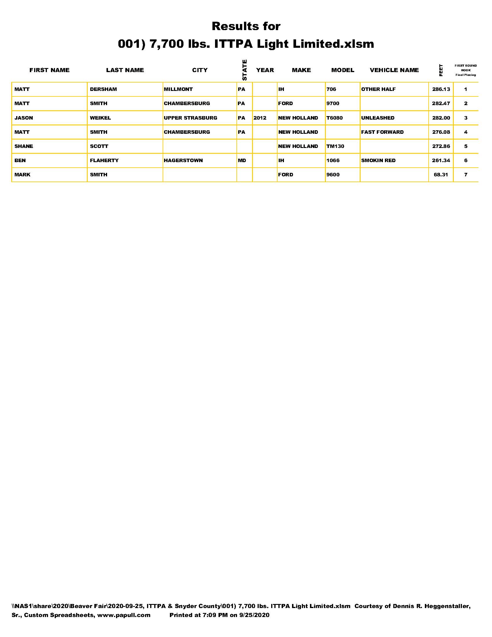 Interstate and Snyder County Pull,  September 25, 2020
