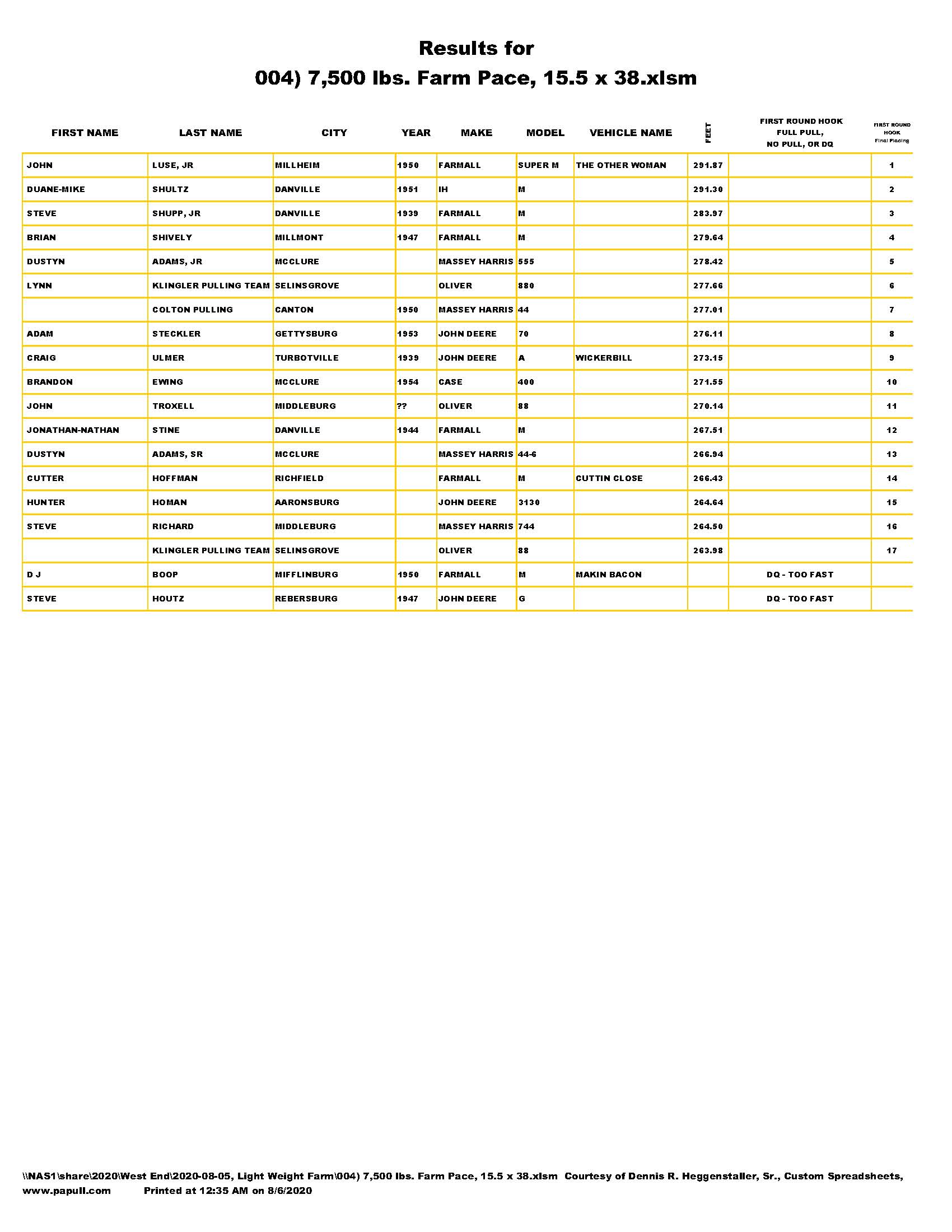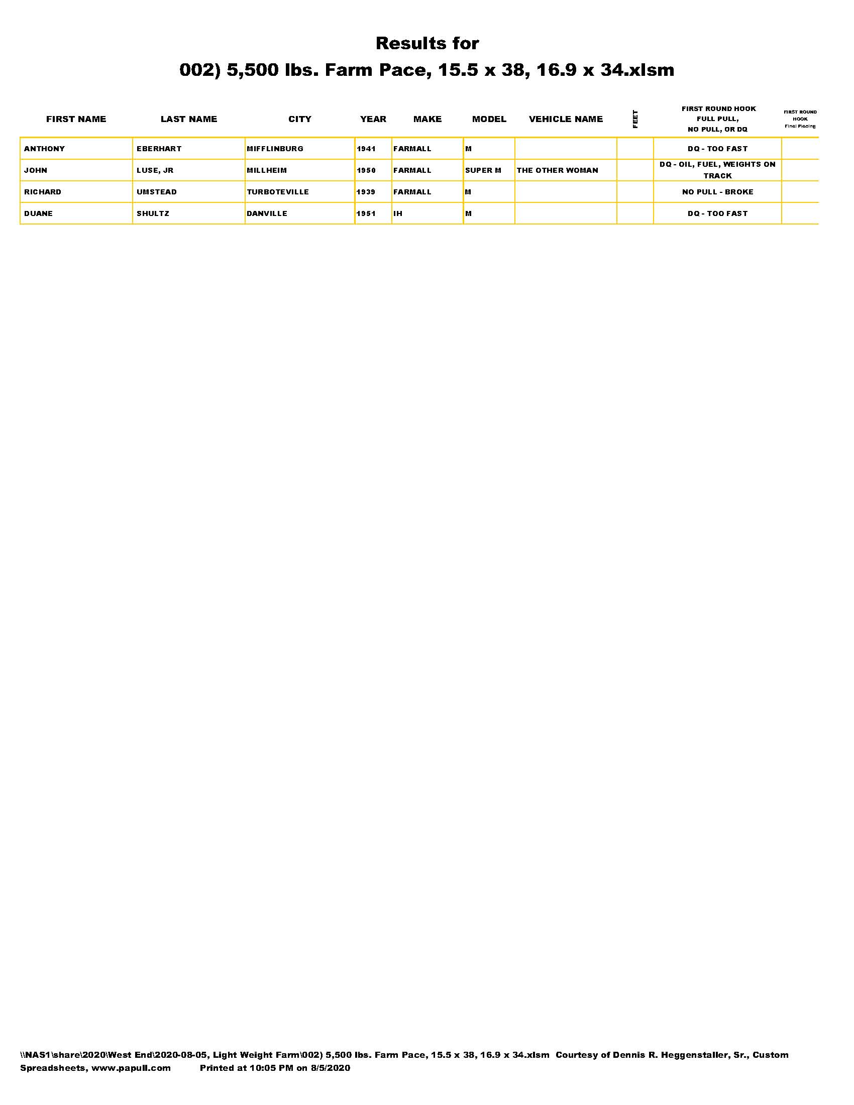 Light Farm Stock Pace Pull, August 5, 2020