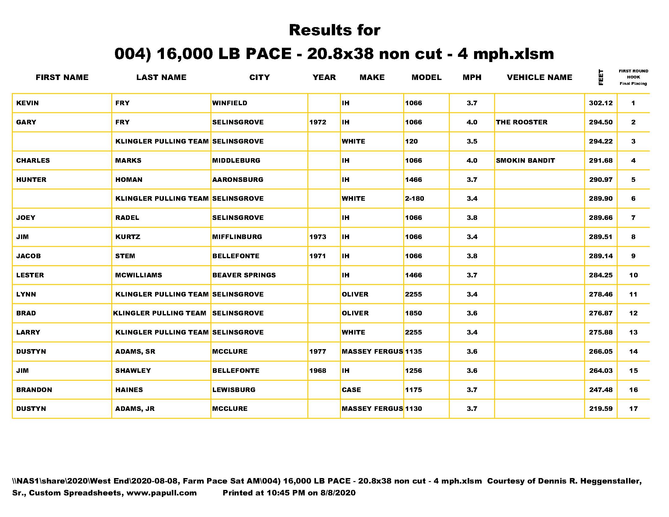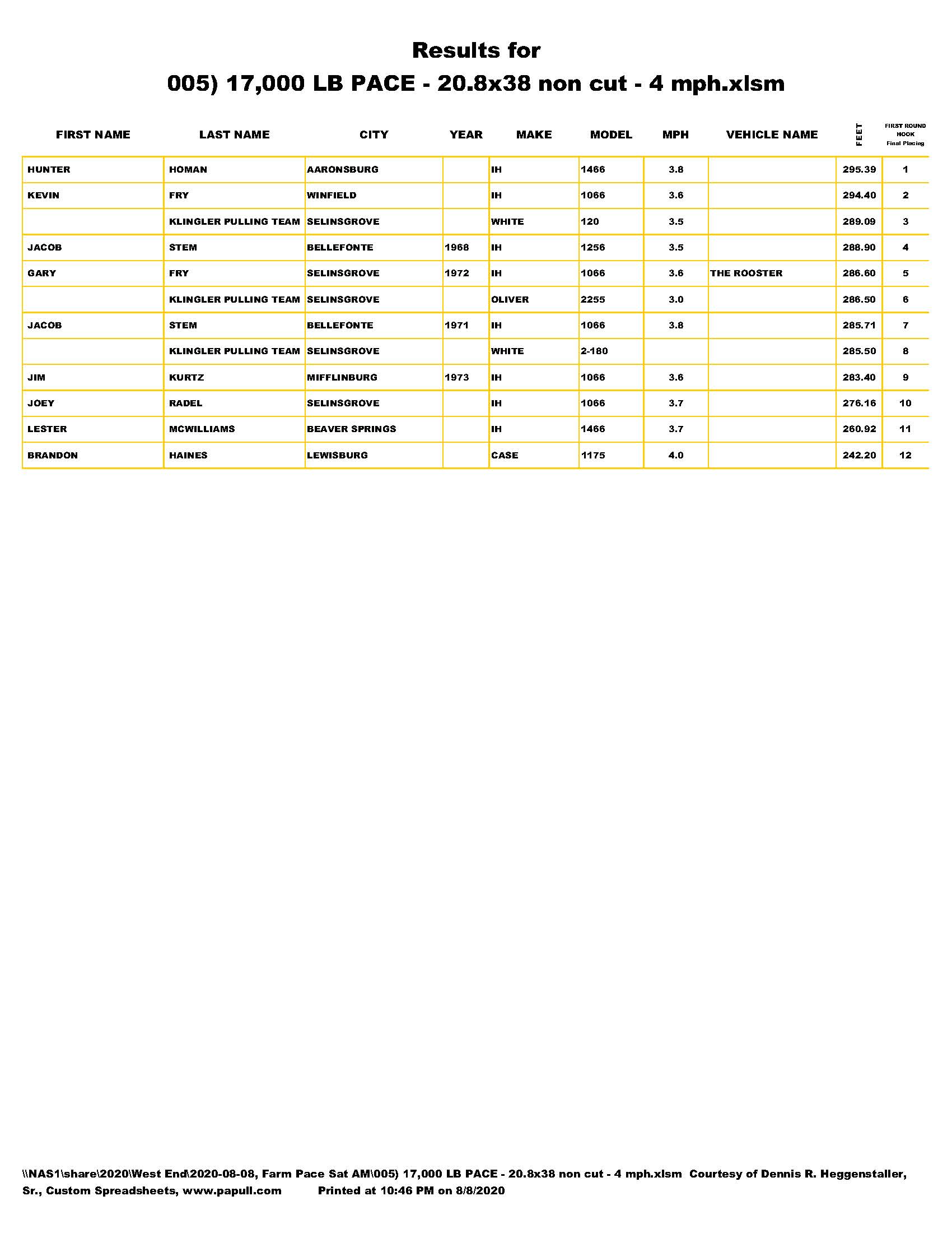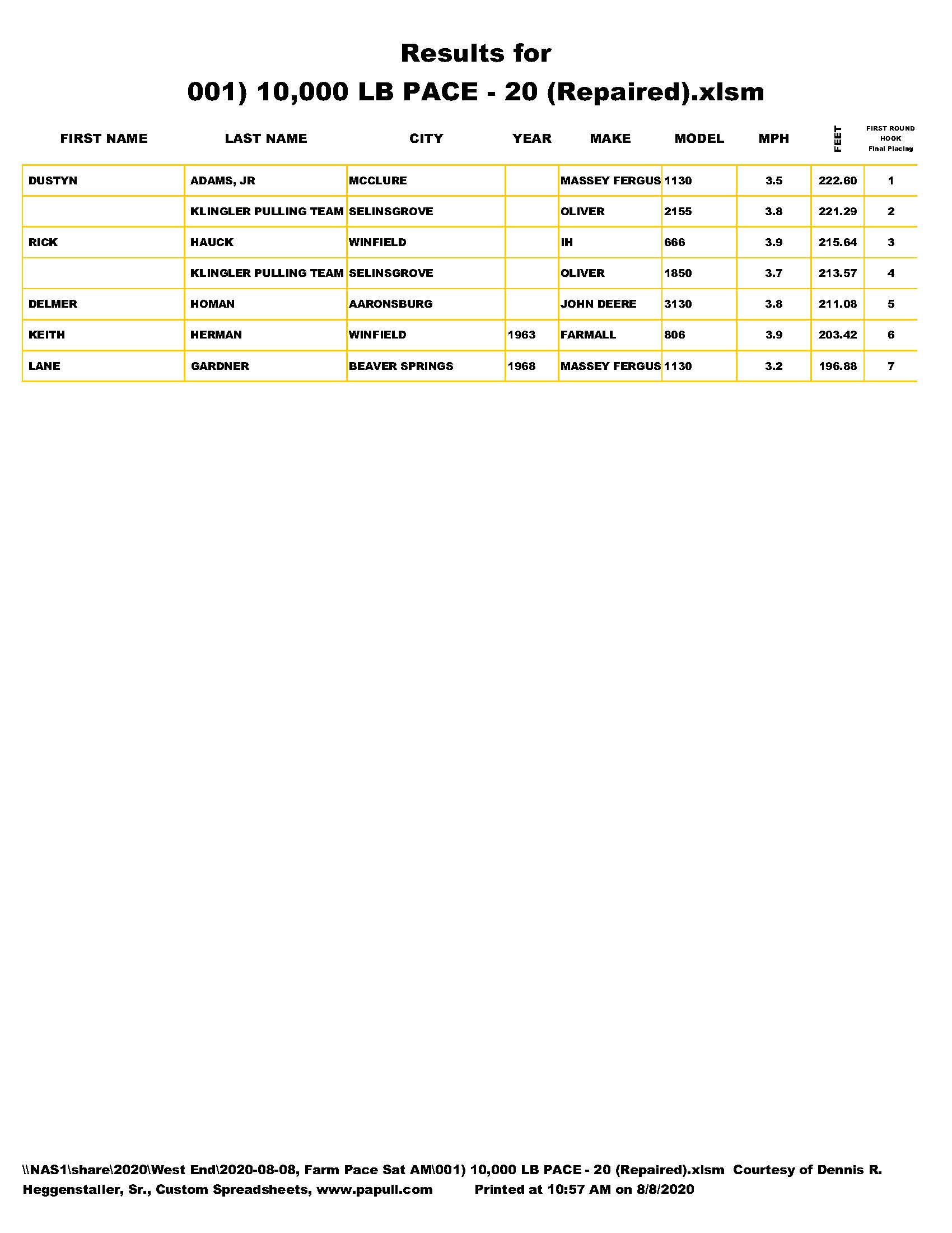Farm Stock Pace Tractors, August 8, 2020